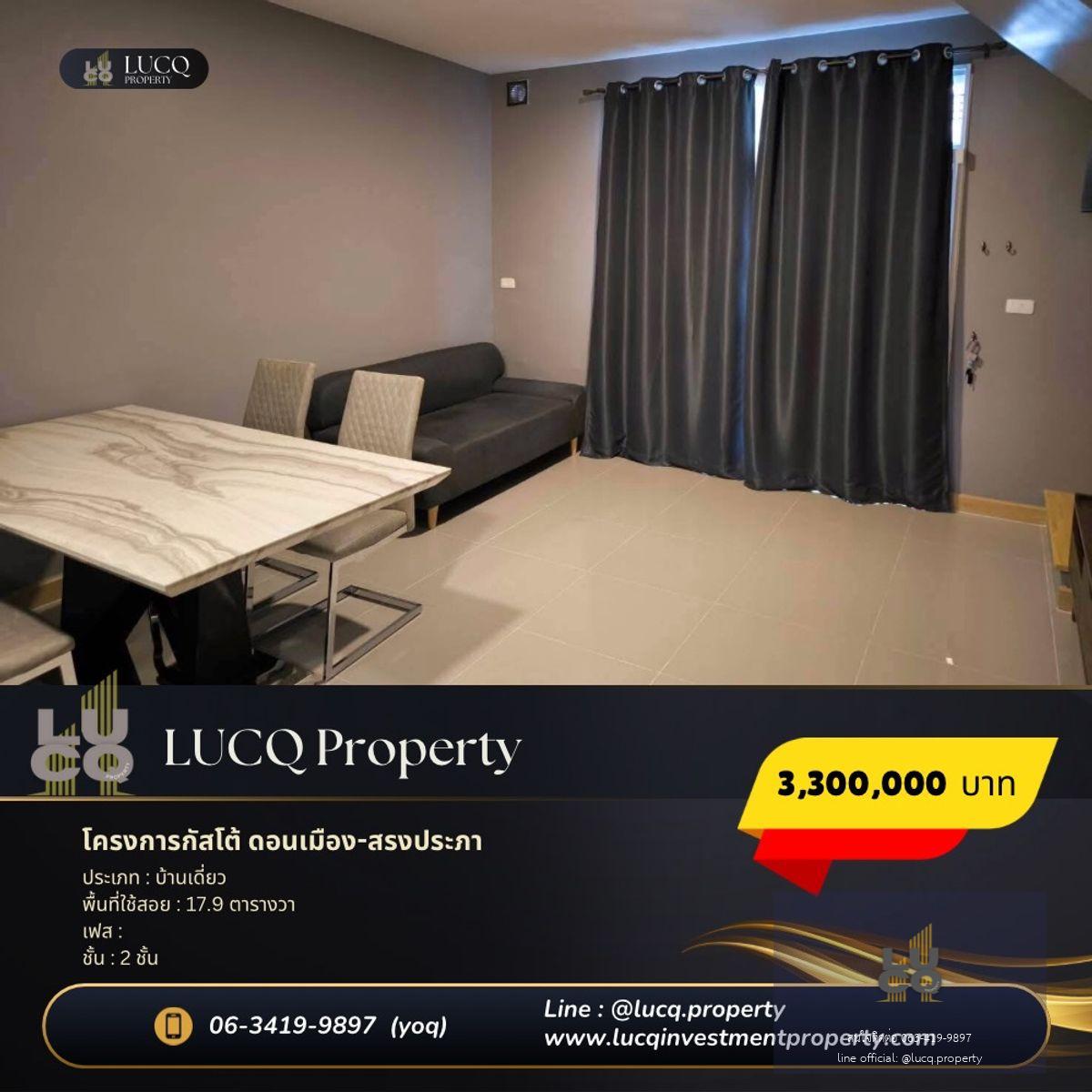ขายบ้านทาวน์โฮม โครงการกัสโต้ ดอนเมือง-สรงประภาราคา 3,300,000 บาทผู้ขายออกค่าโอนทั้งหมด