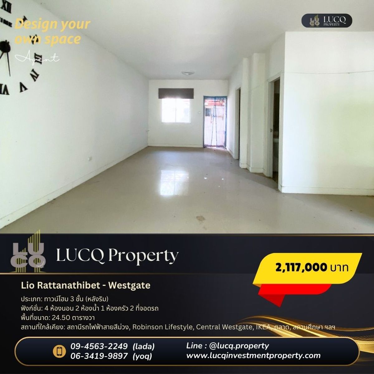 ไลโอ รัตนาธิเบศร์-เวสต์เกต หลังมุม ใกล้สวน ขายตามสภาพ
