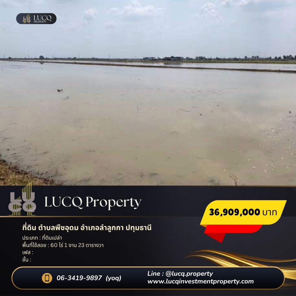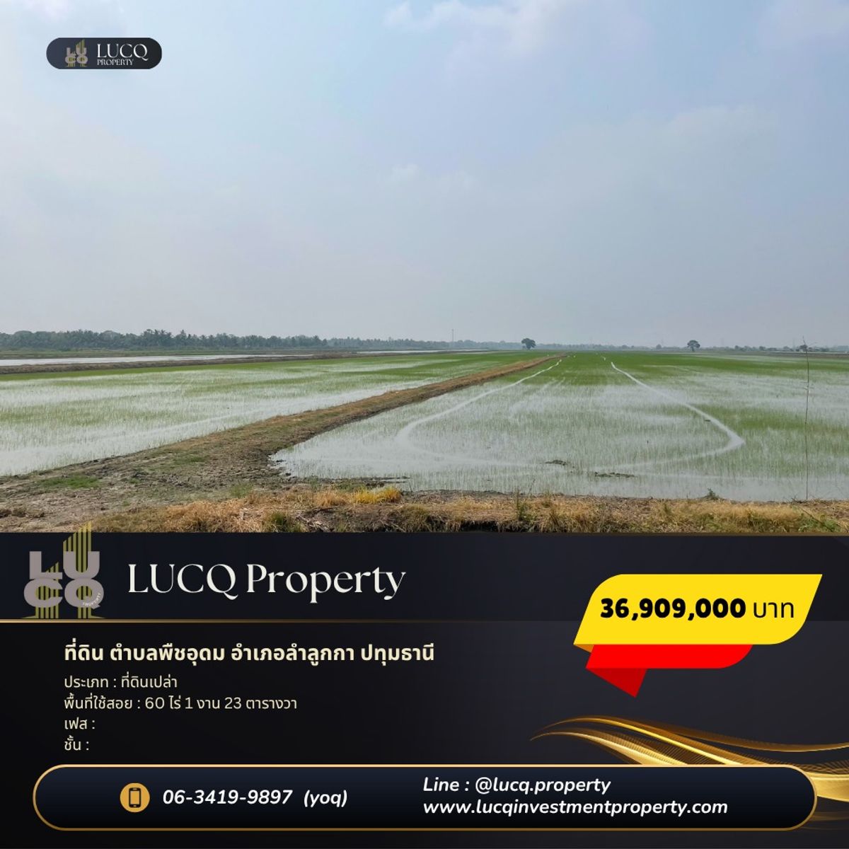 ที่ดินเปล่า ขนาด 60‑1‑23 ไร่ตำบลพืชอุดม อำเภอลำลูกกา จังหวัดปทุมธานีพิกัด: https://maps.app.goo.gl/yTsJiXPGgybFwcSm8?g_st=ic